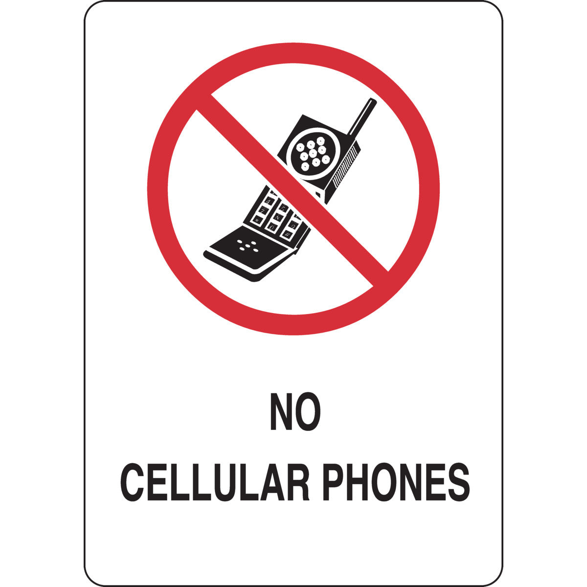No Cellular Phones Sign, 10" H x 14" W x 0.06" D, Polystyrene