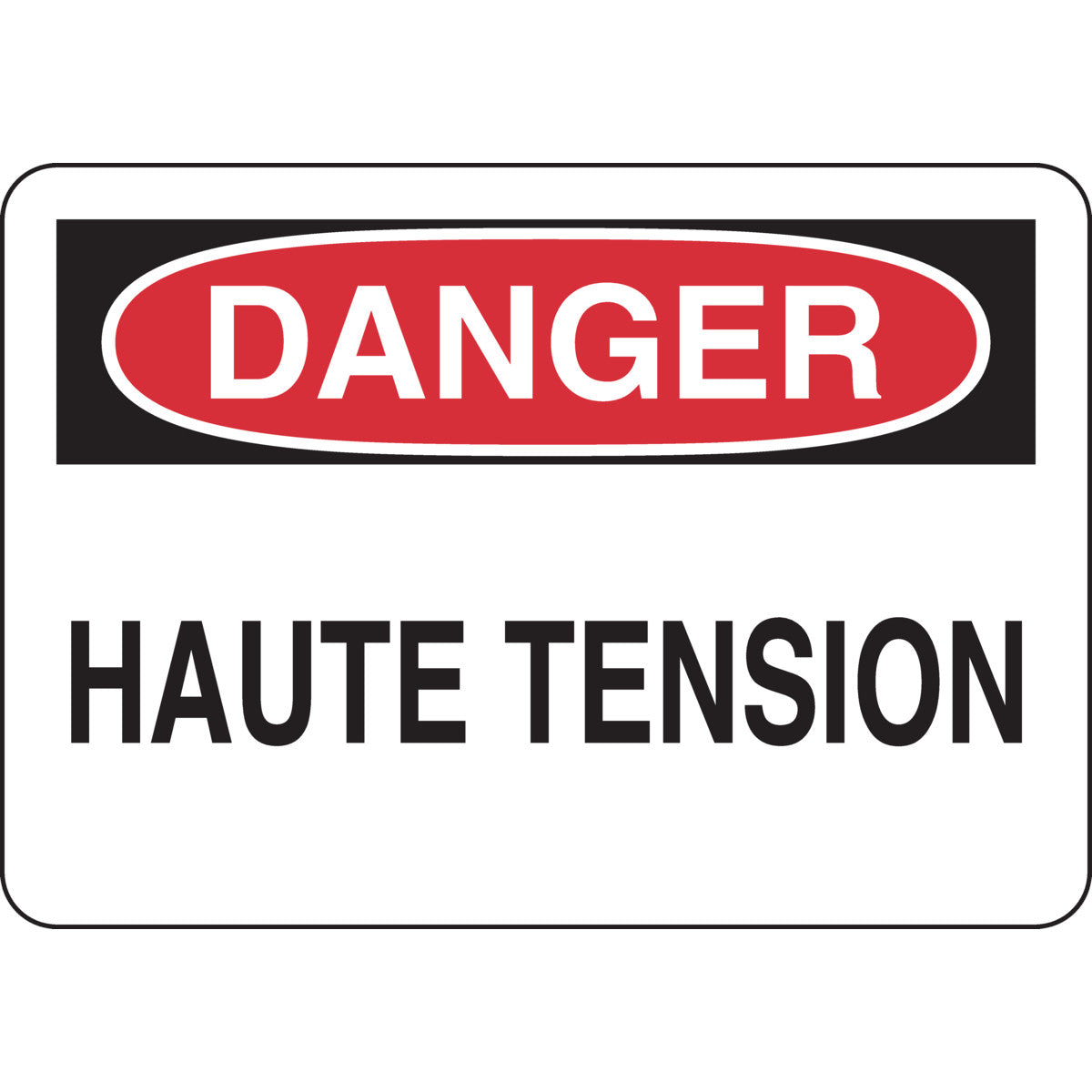 DANGER Haute Tension Sign, 7" H x 10" W x 0.06" D, Polystyrene