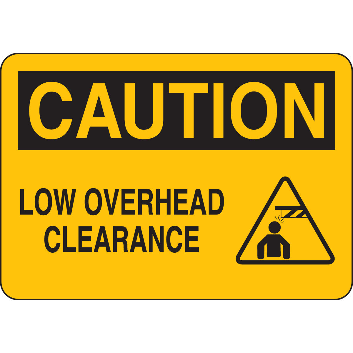 CAUTION Low Overhead Clearance w/Pictogram Sign, 7" H x 10" W x 0.06" D, Polystyrene