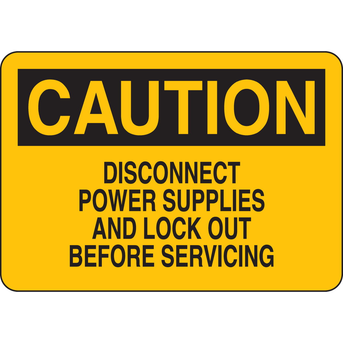 CAUTION Disconnect Power Supplies And Lock Out Before Servicing Sign, 7" H x 10" W x 0.06" D, Polystyrene