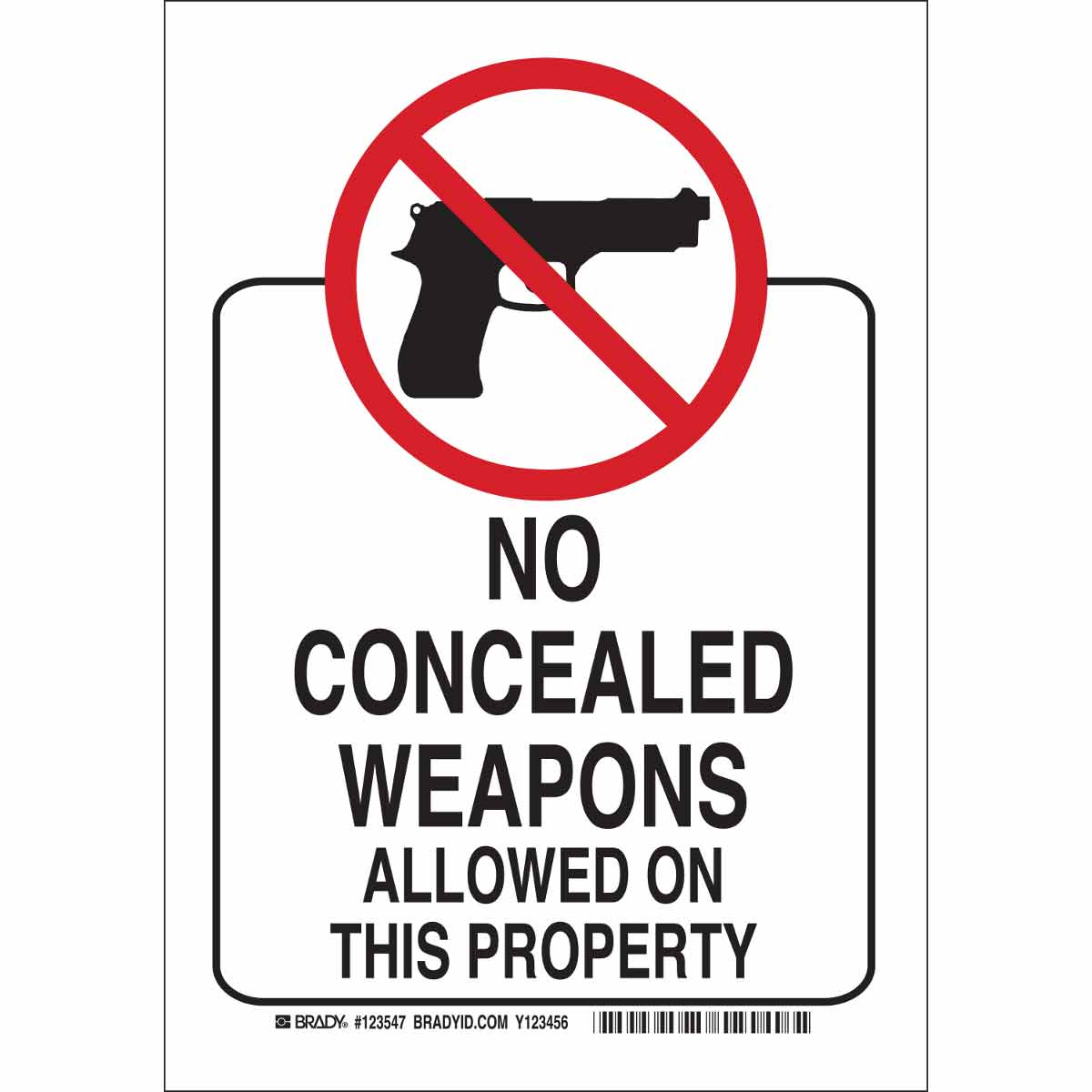 No Concealed Weapons Allowed On This Property Sign, 10" H x 7" W x 0.035" D, Aluminum