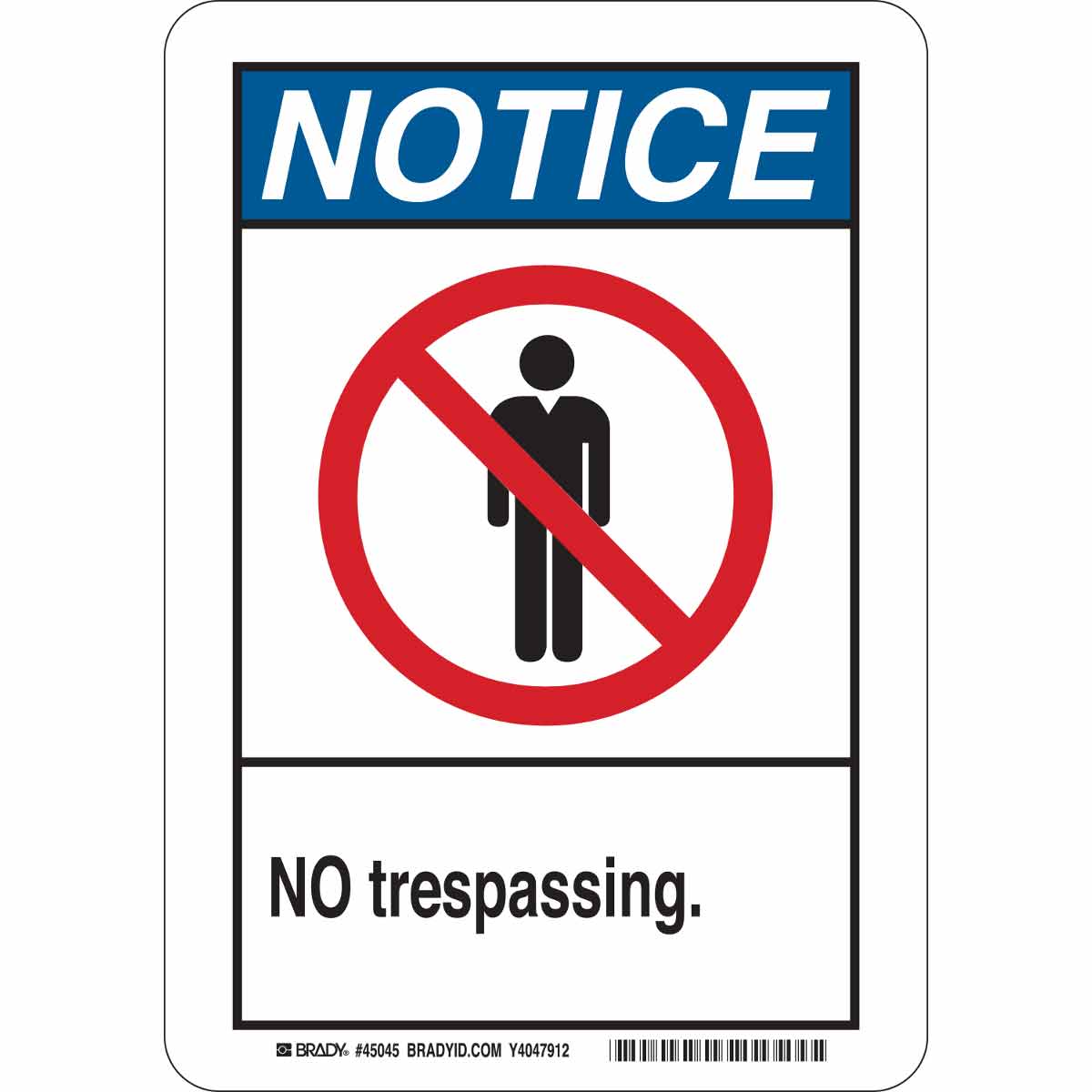 NOTICE No Trespassing. Sign, 14" H x 10" W x 0.035" D, Aluminum