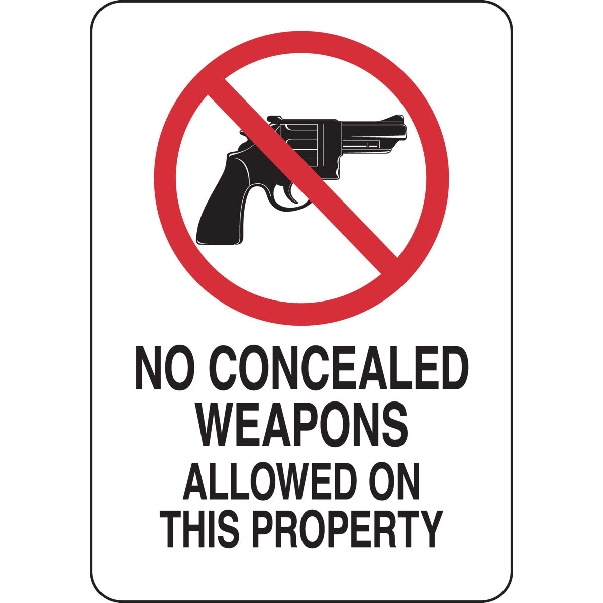 No Concealed Weapons Allowed On This Property Sign, 14" H x 10" W x 0.035" D, Aluminum