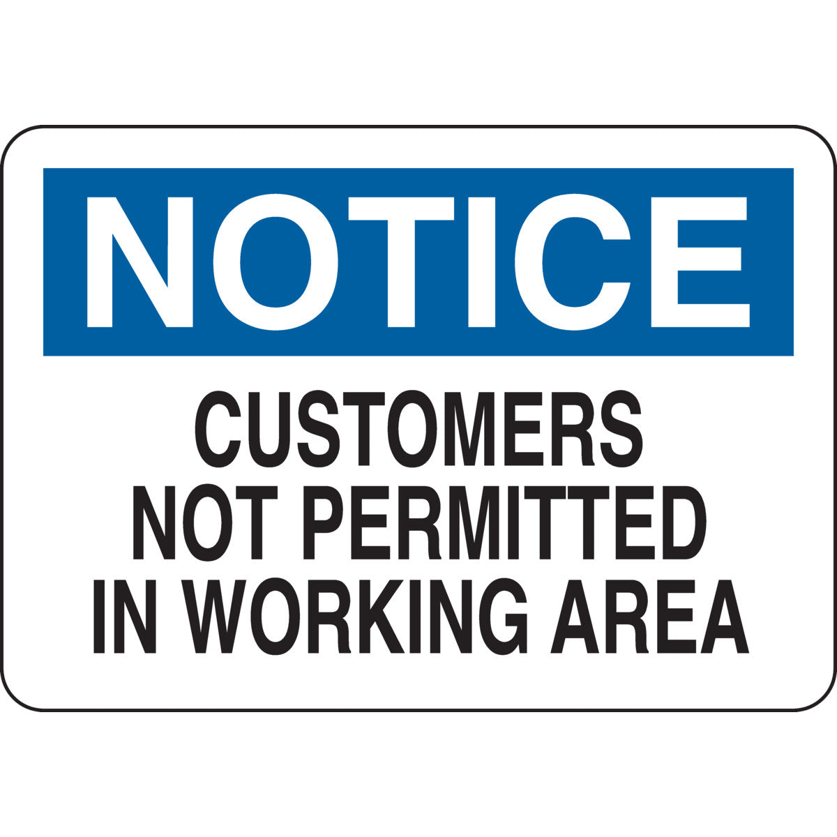 NOTICE Customers Not Permitted In Working Area Sign, 7" H x 10" W x 0.035" D, Aluminum